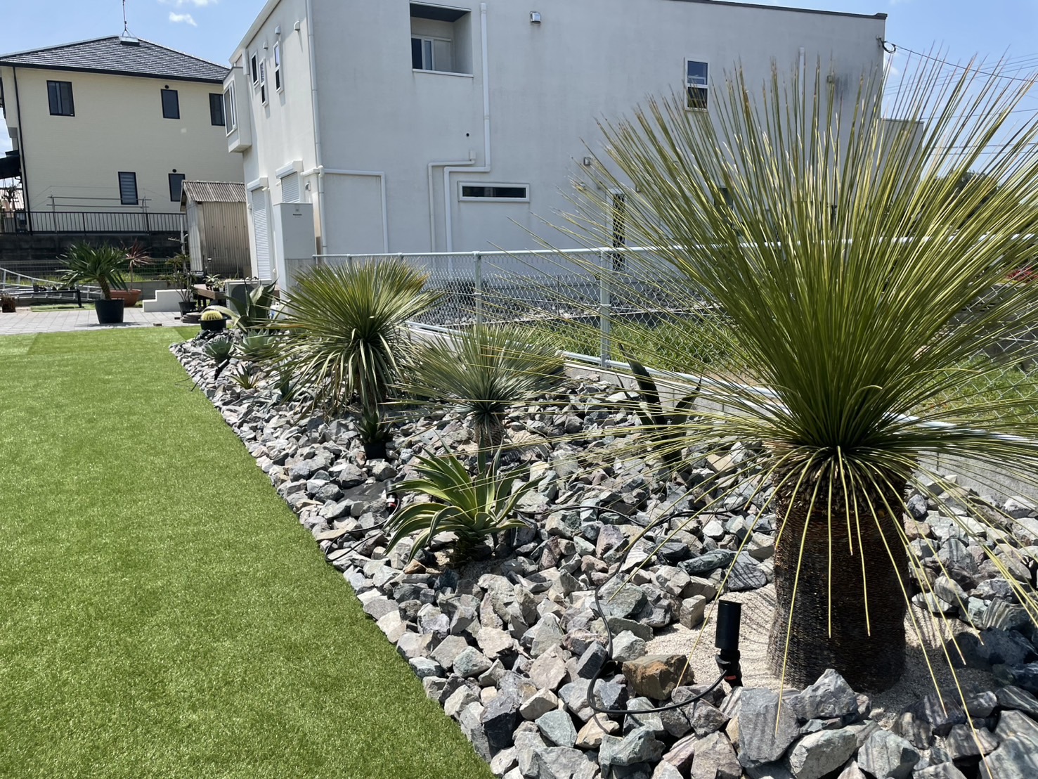 デザインの自由度が高いのもドライガーデンの特徴です。モダン住宅やリゾート風の外観はもちろん、シンプルな建物にもよく映えます。